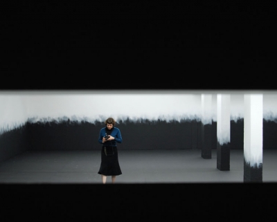 A Moment of Collapse, In-situ installation, Netwerk, Aalst, 2007, 50 x 70 m. Black and white paint, neon lights, fibreboard and coloured filters